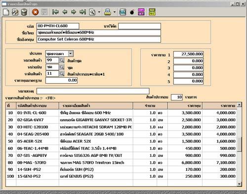 - 4. ในสินค้าชุดสามารถเลือกตัดส่วนประกอบและพิมพ์ส่วนประกอบในบิลได้ เพียงแต่กำหนดเป็นชุดพิเศษ